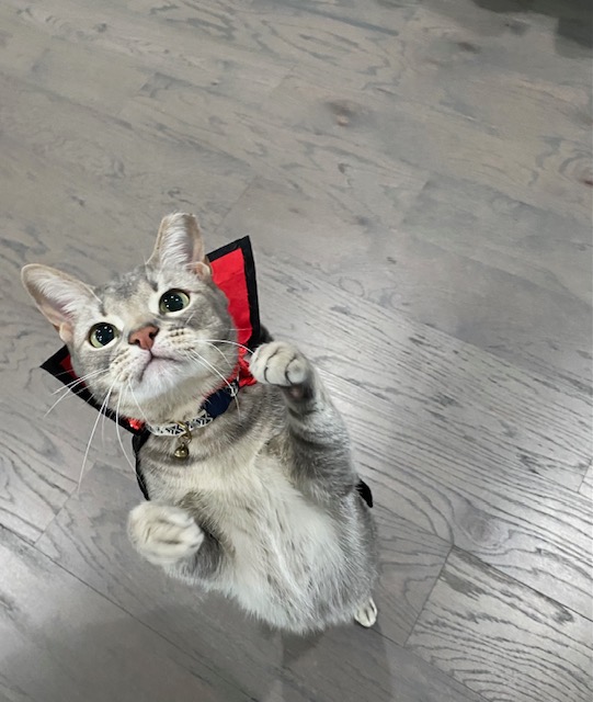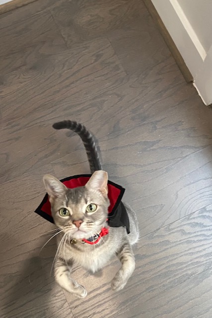 Pet costumes are so cute but you probably balk at paying money for your own costumes, much less your pets! Plus, cats are not known for being cooperative when it comes to clothes-unlike their doggo counterparts. A cape is a good compromise as it is basically a blanket, and it goes around their neck, where they should be used to feeling their collar. A cape is also a great base for lots of different costumes. I made my cat a vampire, but this could also be a wizard (or witch), superhero, or Zorro!