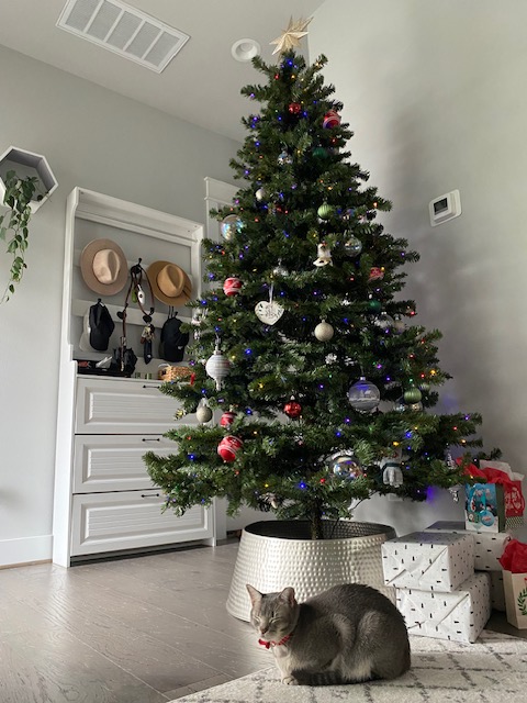 It’s not December yet but the halls are decked and the majority of the outside lights are hung. I of course had to do a photo shoot with the pets and would like to share some of the best ones. I probably looked a little strange hanging off the edge of my couch to take some of these, but I think it was worth it!