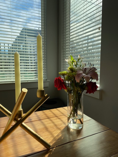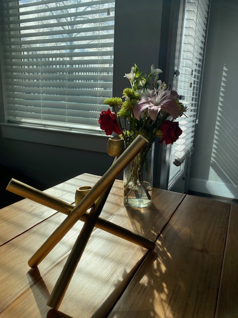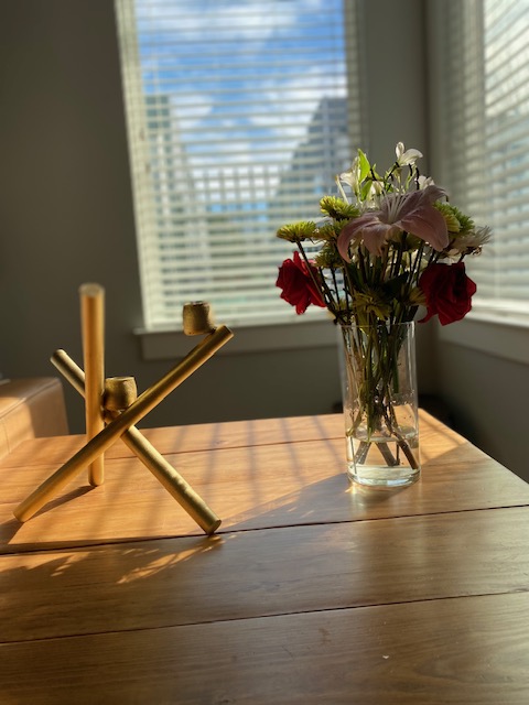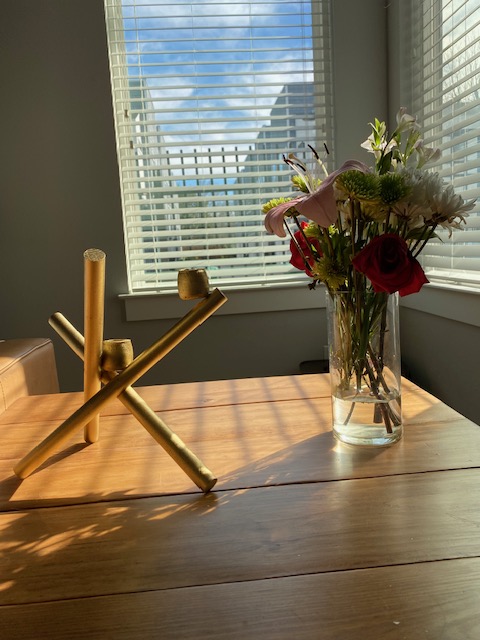 I saw this nice candelabra on West Elm and loved it. However, I’m not an English aristocrat in an old house, and more often than not my husband and I eat at our kitchen island. So I decided to make one out of wood and candle cups for the one night a year I would really want a romantic centerpiece.