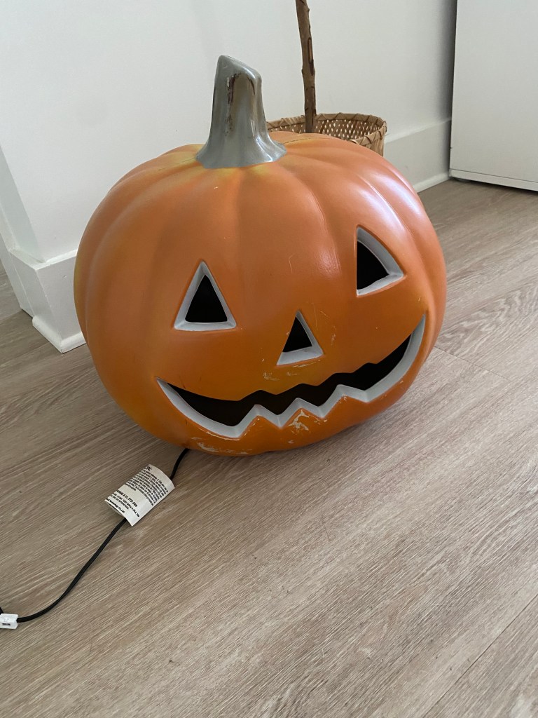 I’ve started unpacking my Halloween stuff and I’m sad my pumpkin didn’t quite make it through the move. Sort of looks like he didn’t put in his dentures, doesn’t he? I’ll be doing a makeover of him soon.