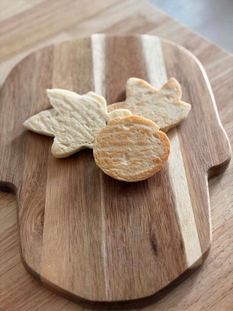 Cut-outs are associated with the Christmas season most of all, but I enjoy busting out the cookie cutters as soon as the calendar turns to September. This is a recipe my mother got from I don’t know where, pared down so your not at your kitchen counter for hours long past it stopped being fun.