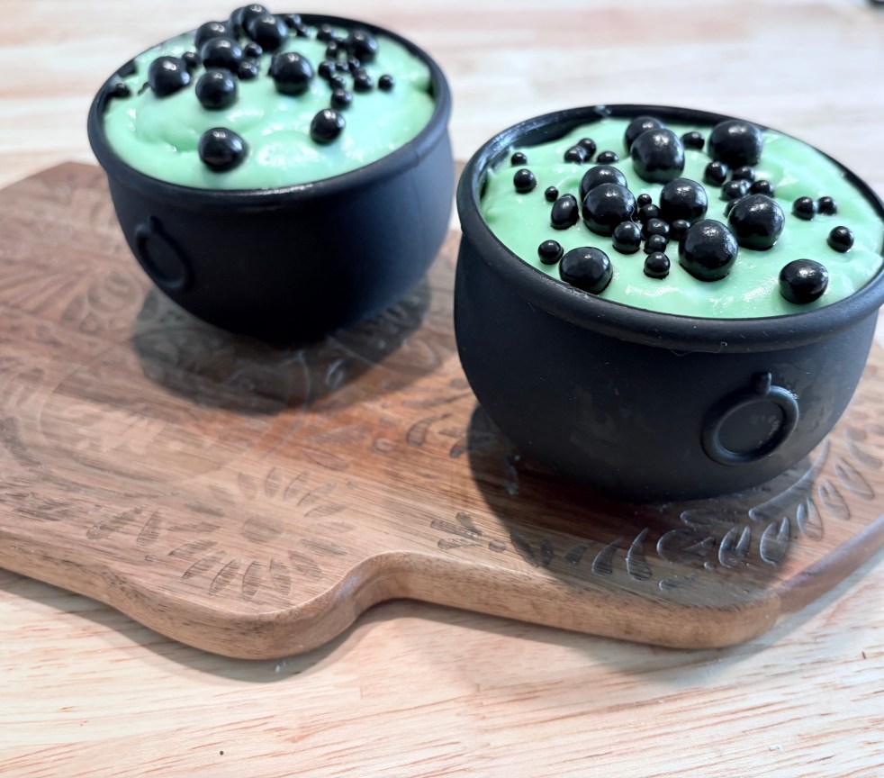 In Harry Potter these cakes make an appearance throughout the series. He eats them on the train to school, and Batilda Bagshot makes a homemade version as a neighbor treat. In my head, I pictured them as very dark chocolate, perhaps made with black cocoa, and fudgy like a brownie. Of course, they were shaped like a cauldron. Now I’m no witch, so my version won’t look like a cauldron without the mold, but us muggles can get close. Firewhiskey is the alcohol of choice for wizards, so I filled them with a whiskey flavored creme patisserie. Decorated to look like a bubbling potion, you have something special for a Halloween movie marathon.